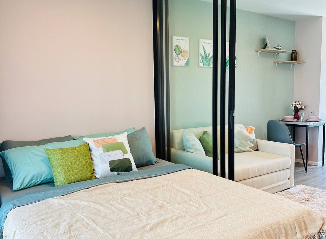 📌 ห้อง 1 Bed Extra ขนาด 30.05 ตร.ม. ตึก A ชั้น 8 ทิศตะวันออก วิวเปิด เห็นพื้นที่สีเขียว ตกแต่งสวยสไตล์มินิมอล เฟอร์นิเจอร์ครบ ลากกระเป๋าเข้าอยู่ได้เลย